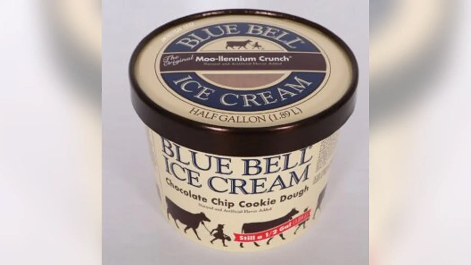 “The half gallons can be identified as Moo-llennium Crunch Ice Cream packaged in a Chocolate Chip Cookie Dough half gallon carton with a Moo-llennium Crunch lid and with the following code located on the top of the half gallon lid: 061027524,” Blue B (Blue Bell Creameries / Fox News)
