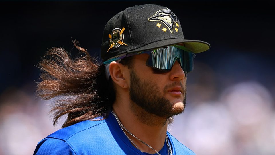 Bo Bichette #11 of Toronto Blue Jays walks off the field before playing the Tampa Bay Rays in their MLB game at the Rogers Centre on May 18, 2024 in Toronto, Ontario, Canada. (Mark Blinch/Getty Images)