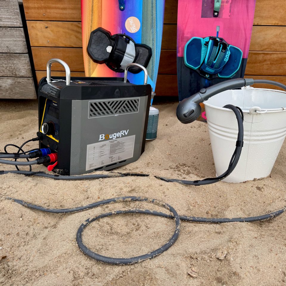 I’m impressed by BougeRV’s water heater, but I’m a little concerned about its durability over time. After using it on the beach on a windy day, I ran into trouble once I returned inside: the heater didn’t heat and the water was reduced to a trickle out of the showerhead. It’s possible that some sediment trapped in the lines reduced the flow rate below the 1.2L/min required for ignition. Nevertheless, the issue was resolved after a few minutes of fiddling with the hoses and filters, and turning the unit on and off again.