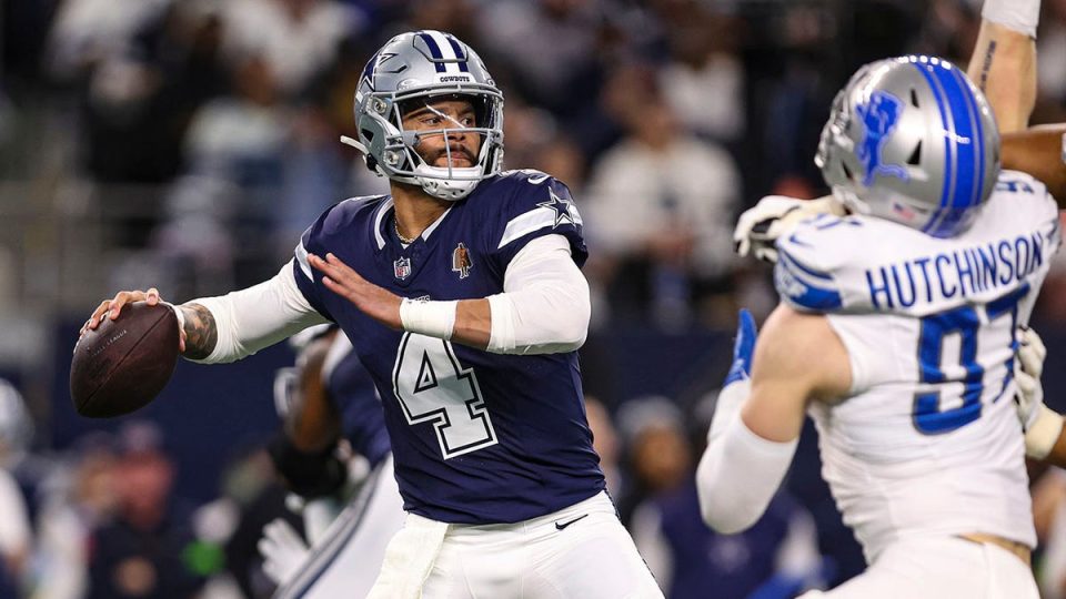 Dallas Cowboys quarterback Dak Prescott looks to pass during the game against the Detroit Lions at AT&T Stadium in Arlington, Texas, on Dec. 30, 2023. (Perry Knotts/Getty Images)