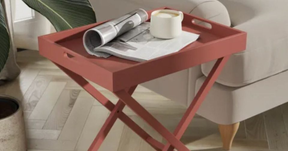 Dunelm’s tray table is available in four colours – terracotta, white, stone and lilypad – and has a painted finish. Out of 32 reviews left on the Dunelm website, 30 customers have given the table five stars.