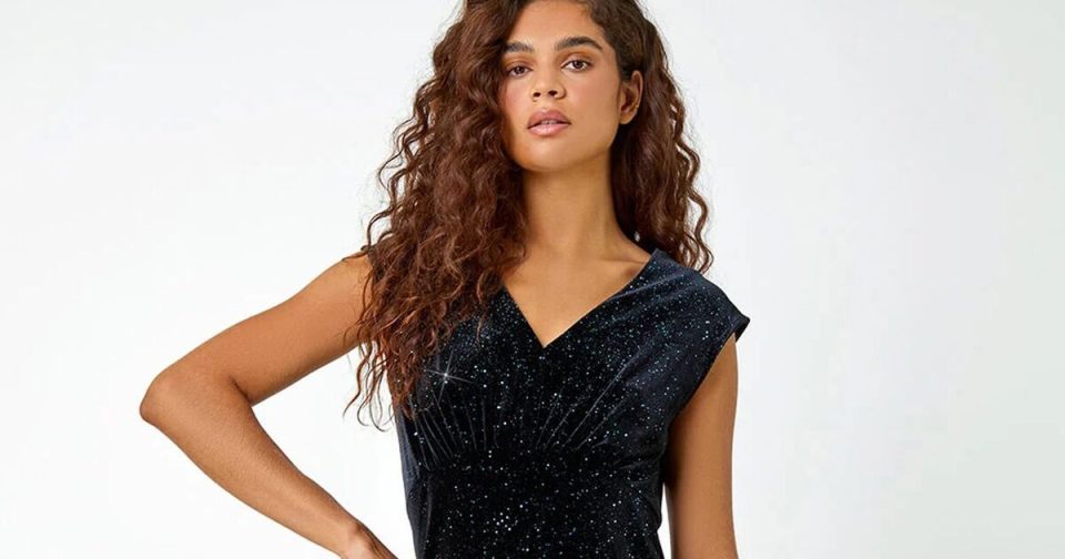“Absolutely beautiful,” said another happy customer. “Great value and looks more expensive than it is. I am 5’3″ so it was full length on me, which is what I really liked.” A third said: “Love it. It fits perfectly and is comfortable to wear. Love the shimmer from the glitter.”