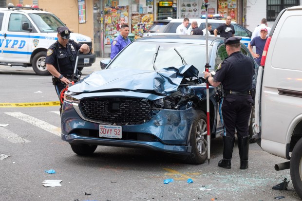 “A police car was following him with lights and sirens,” witness Sandra Villman, 56, told the Daily News. “The impact was like a boom, like an explosion, and I realized the car hit two people.”