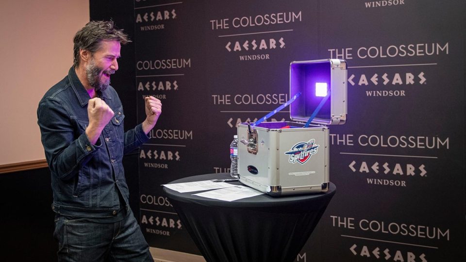 Reeves signed a one-day contract with the Windsor Spitfires of the Ontario Hockey League Thursday to raise money for mental health. (Kiley Gray/ Ceasars Windsor)