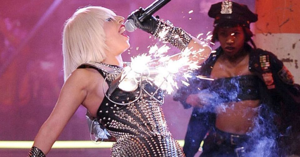 Meanwhile, Gaga also took on Madonna’s conical bra look but with a modern and even more attention-grabbing pyrotechnic twist, as she let fireworks loose out of her outfit.