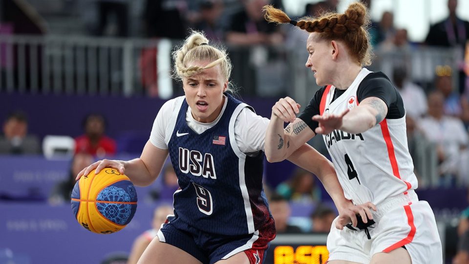 Hailey van Lith of Team USA competes in the women’s 3×3 basketball bronze medal game against Canada on Aug. 5, 2024, in Paris. (Matthew Stockman/Getty Images)