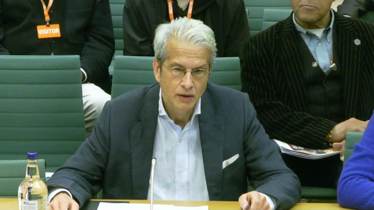 BBC board member Sir Robbie Gibb appearing before the Culture, Media and Sport committee. Pic: PA