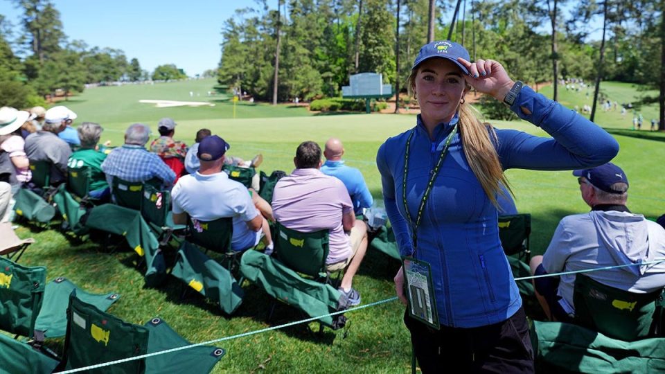 Golfer and social media influencer Grace Charis looks on during the first round of the Masters Tournament. (Kyle Terada-USA TODAY Sports)