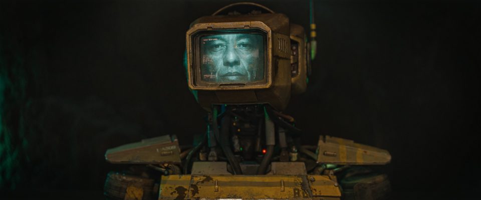 Outside of a multitude of cultural references meant to remind you that it’s set in the ’90s, and shots of Neurocaster users lying passed out on the street like junkies, The Electric State never feels very interested in doing the kind of worldbuilding necessary to make movies like it work. Instead, it simply spells out that the inventor of the Neurocaster, Ethan Skate (Stanley Tucci), is a villain who wants Colonel Marshall Bradbury (Giancarlo Esposito) to capture Michelle’s robot. And Bradbury’s chasing after the pair gives the film a way to show how littered The Electric State’s world is with the rusted frames of machines destroyed during the war.
