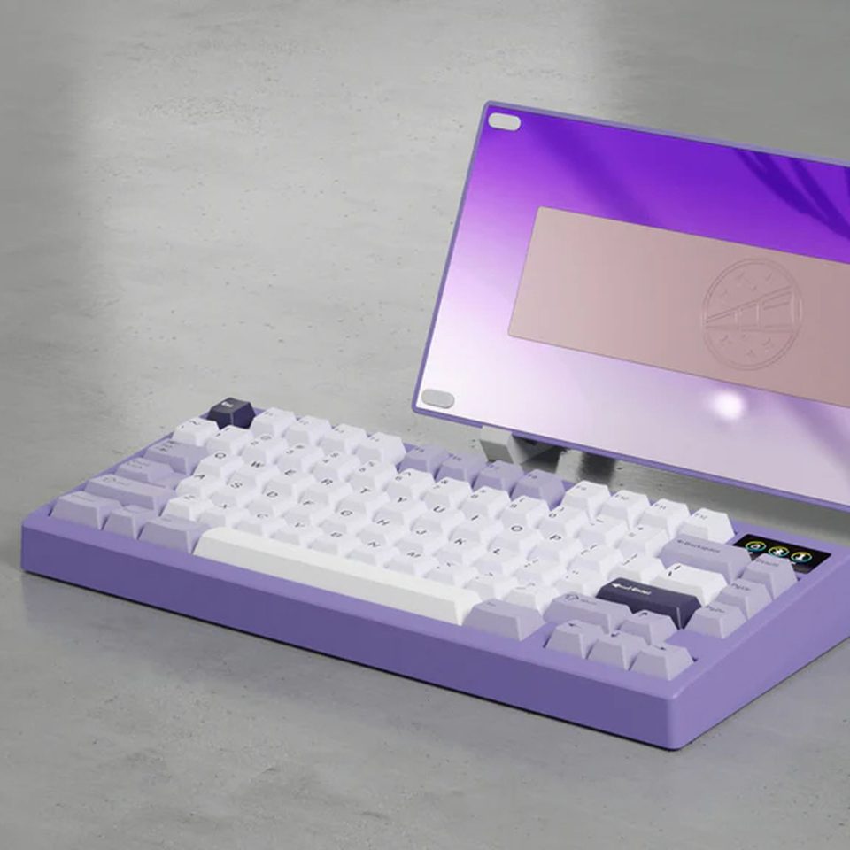 A gasket-mount 75 percent keyboard with many user-swappable options like a rotary knob, LCD, and decorative external weights / back plates.