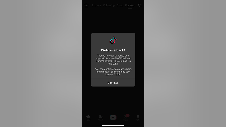 TikTok welcomed users back to the social media platform after President-elect Trump vowed to push through an executive order delaying a ban. (Fox News / Fox News)